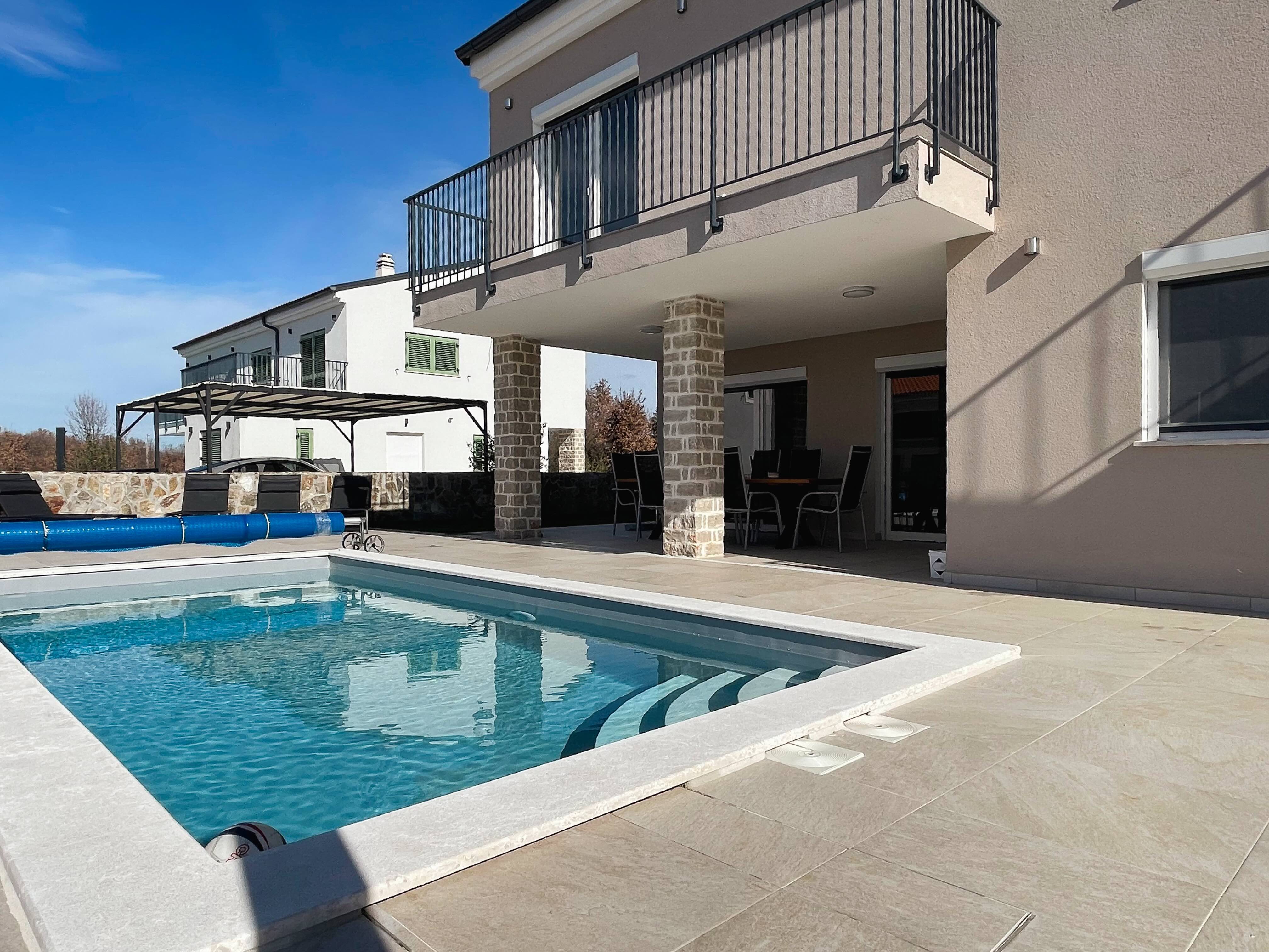 Villa Farini is a brand-new villa with private pool, only 15 minutes drive from the beaches and old town of Poreč. Located in the peaceful village of Farini, near Višnjan. Villa Farini is perfect for up to 6 guests with 3 bedrooms and 3 ensuite bathrooms. The villa is modern and comfortable, making it ideal for families or friends seeking a stylish base to explore the beaches, hilltop villages, and vineyards of Istria.