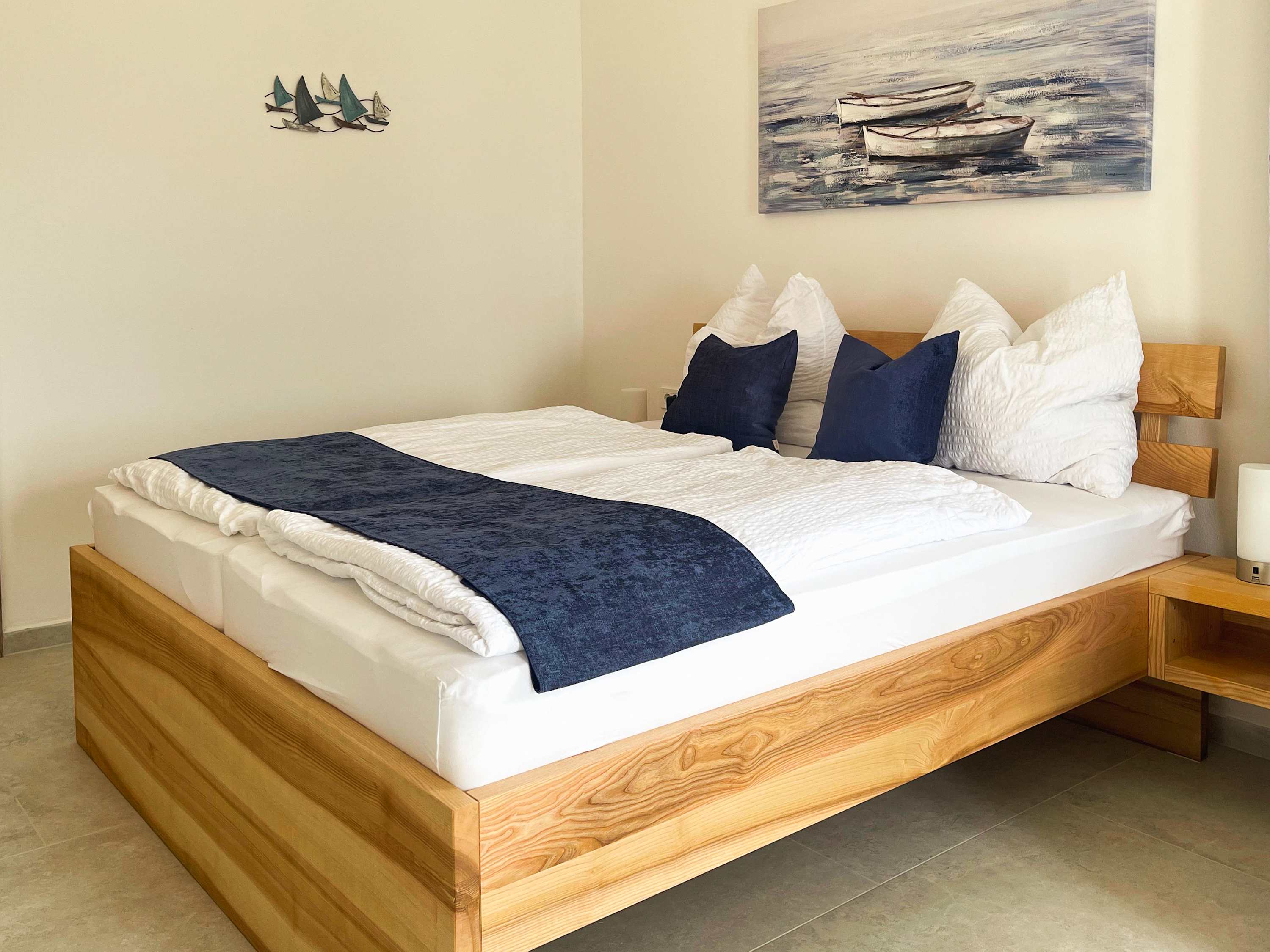 The luxurious beds and furniture in the bedrooms were custom-made by a cabinetmaker. The wooden beds are therefore very sturdy and comfortable, giving the rooms a warm and stylish atmosphere.