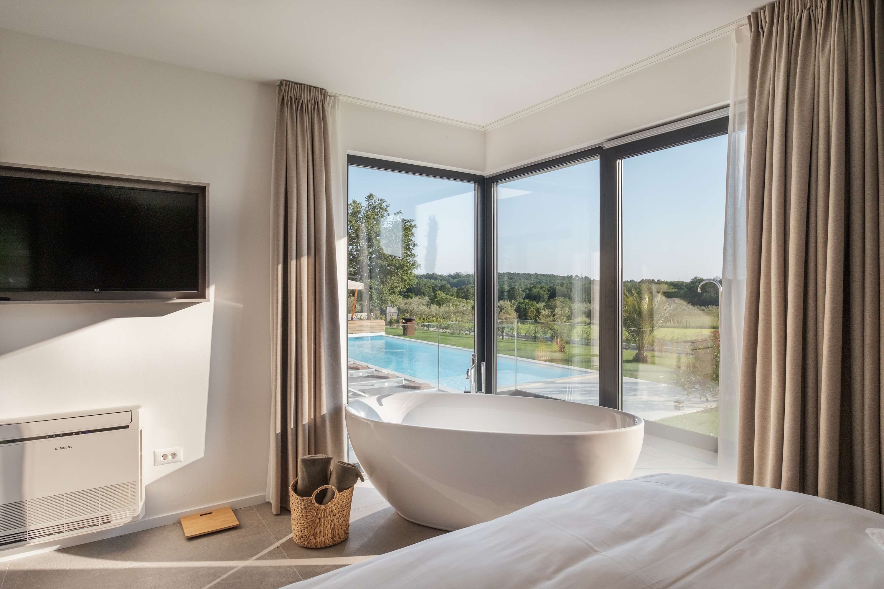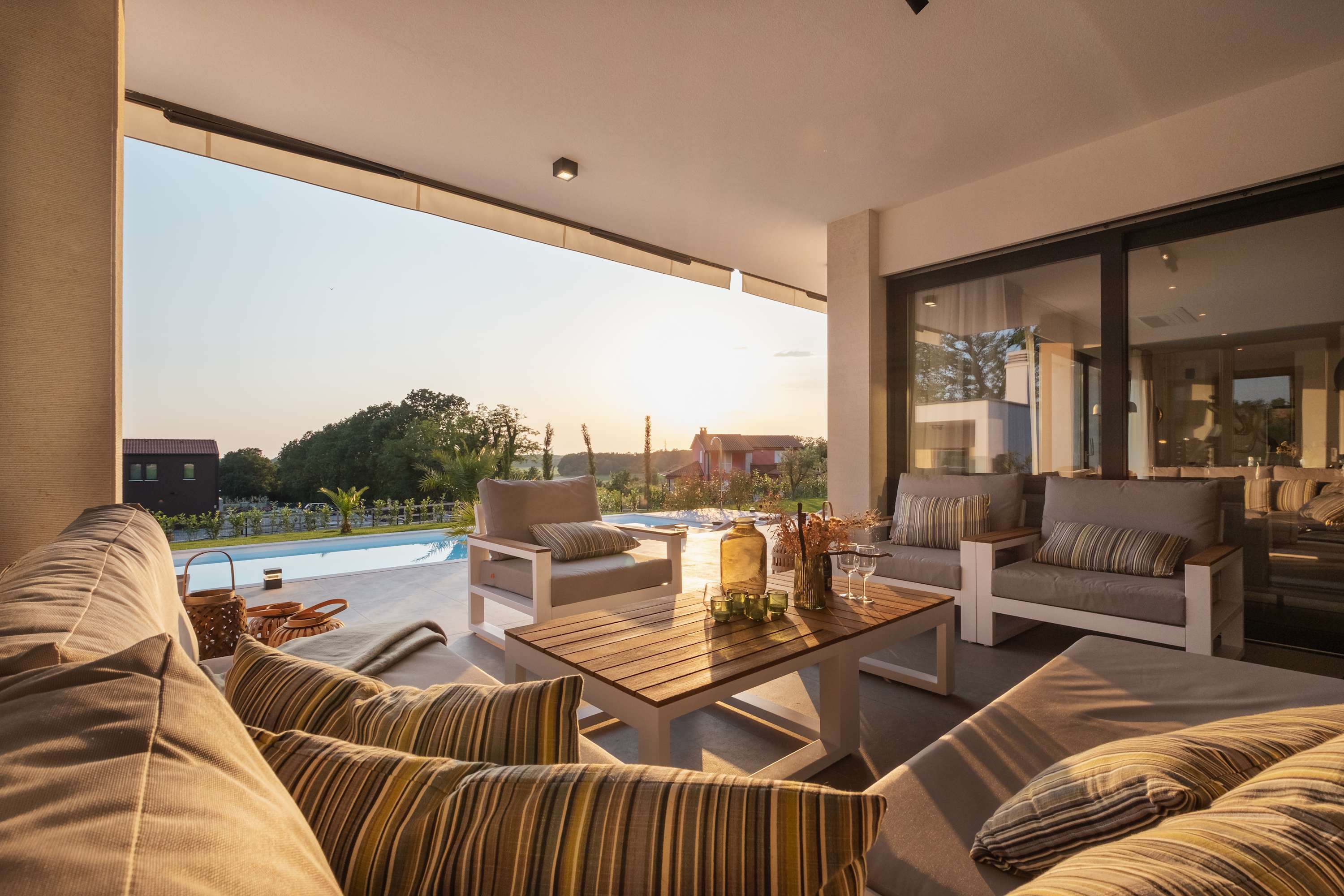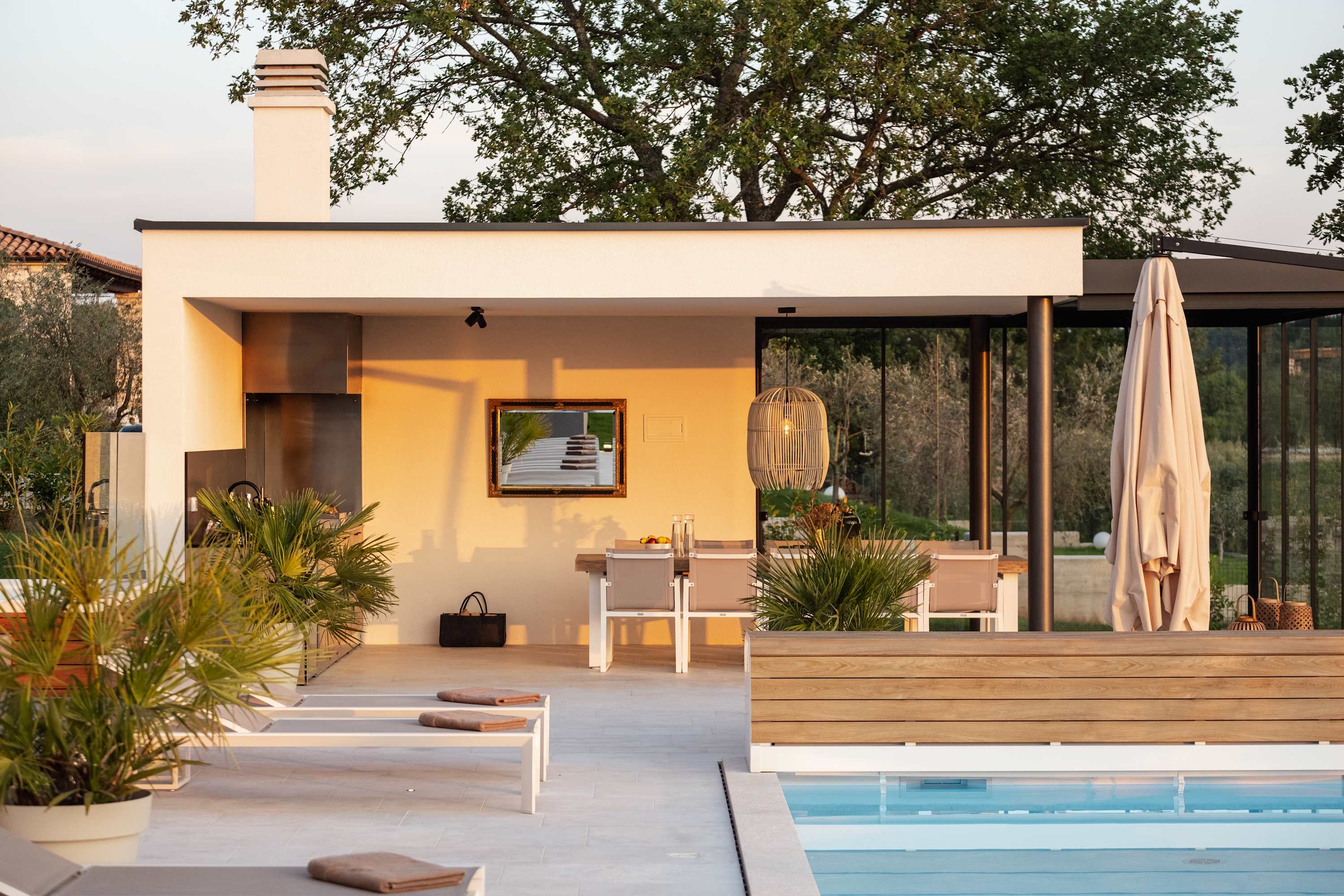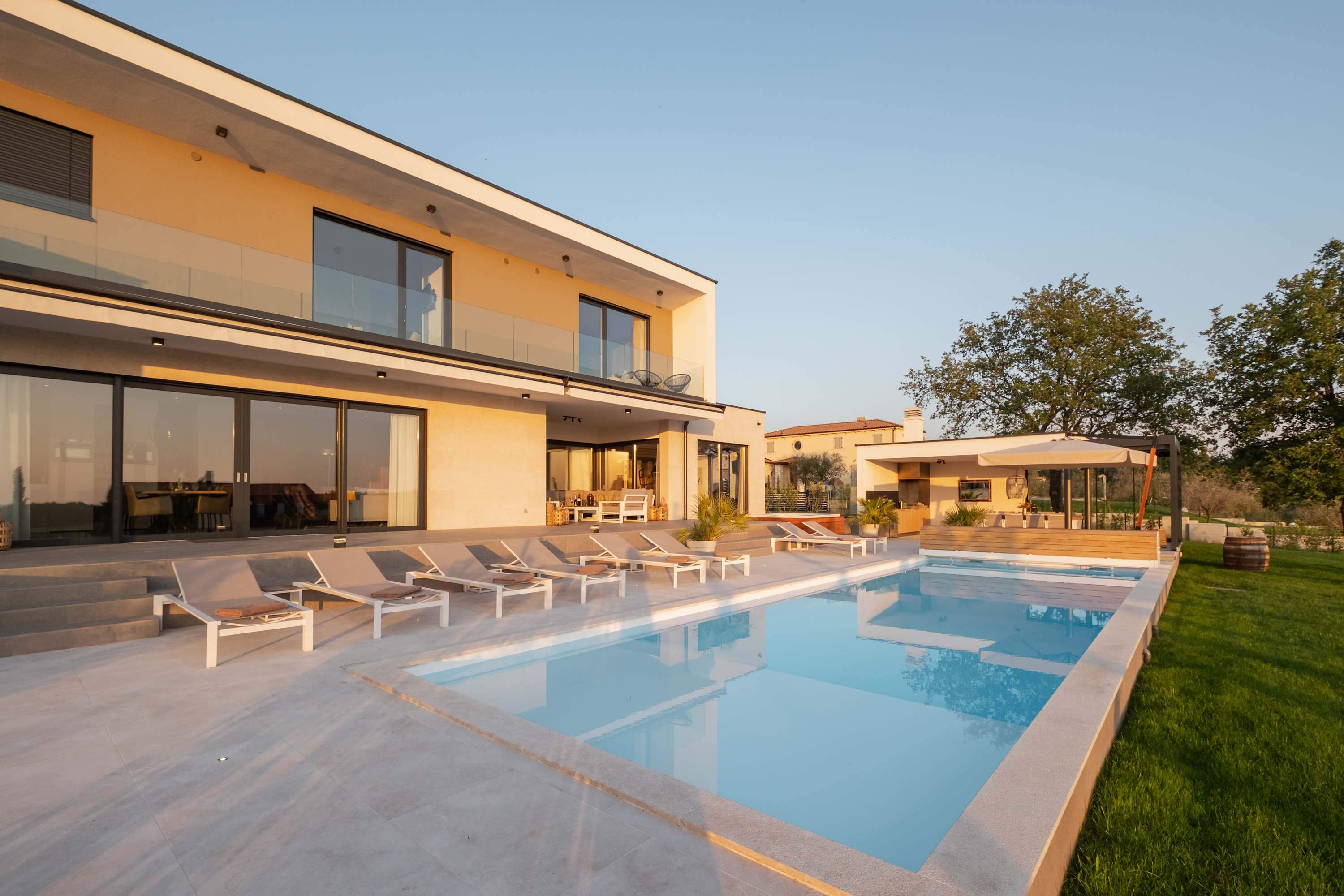 Villa Fuskulina is a luxurious, architect-designed villa near Poreč, surrounded by olive groves and vineyards with views of the Adriatic. With 4 bedrooms, private pool, jacuzzi, outdoor kitchen, and spacious terraces, it offers comfort and privacy year-round. Fully energy self-sufficient, it’s the perfect retreat for families, friends, or business stays in beautiful Istria.