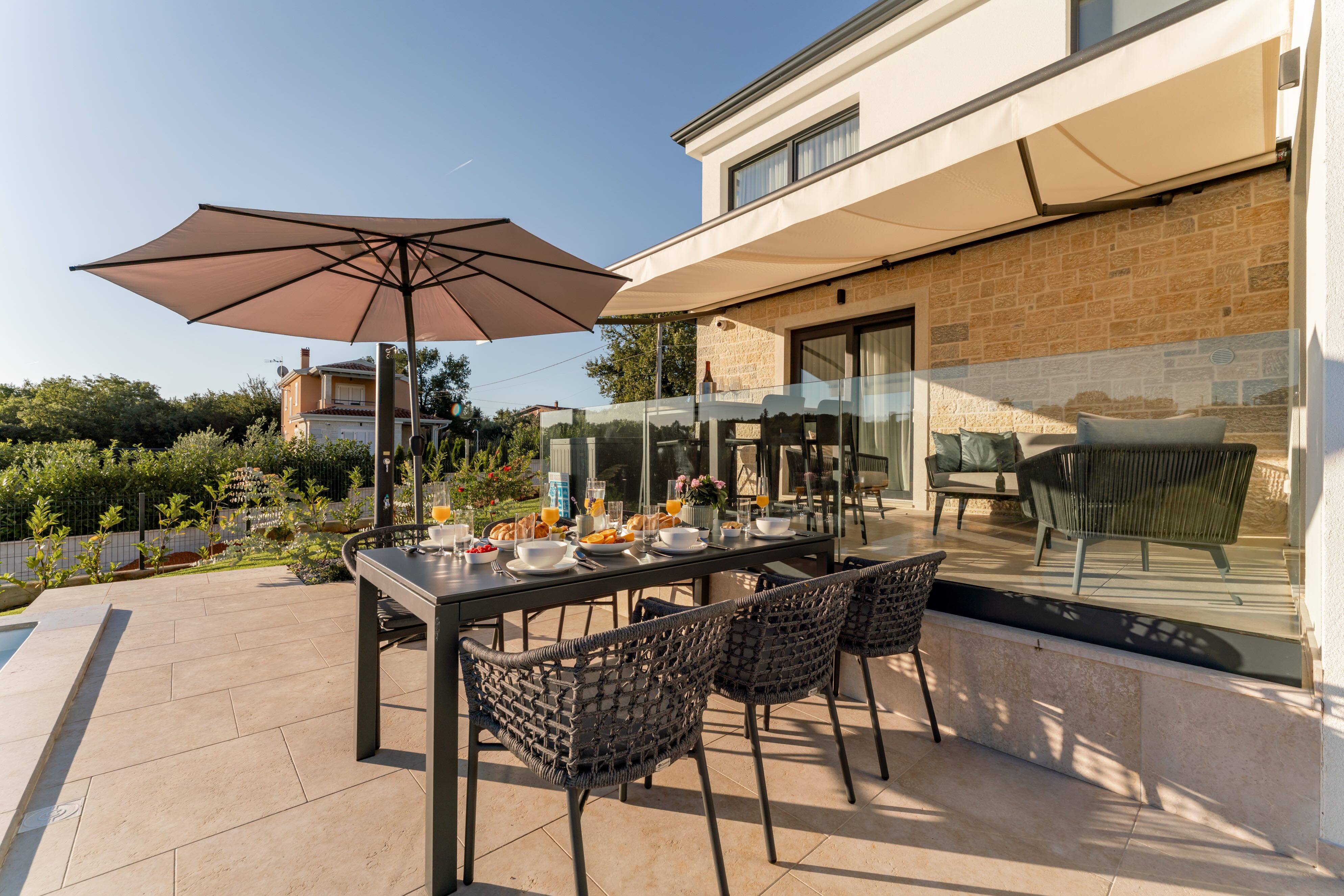 We had the honor of staying here as the second guests. It is a beautiful house; everything is perfect down to the last detail. A beautiful large swimming pool with a lovely view. They really thought of everything when furnishing the house. Poreč, Novigrad, Rovinj, Vrsar, and Pula are also certainly within driving distance. In short, a top-notch house!